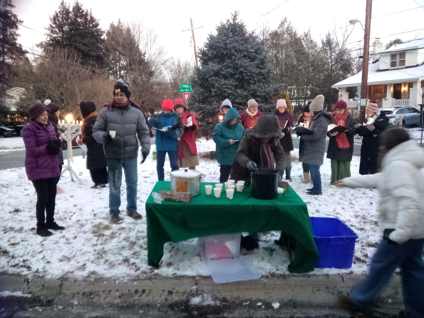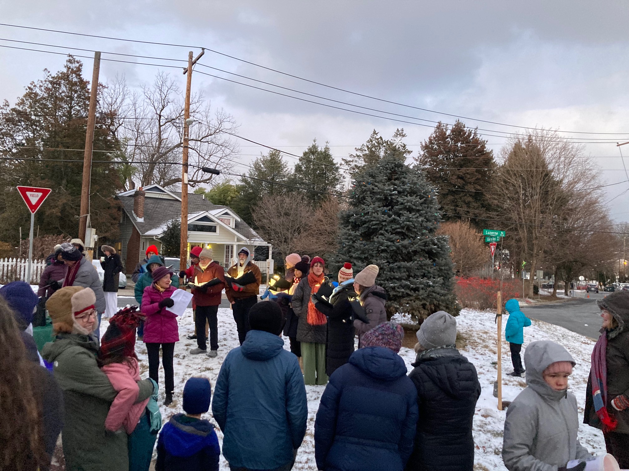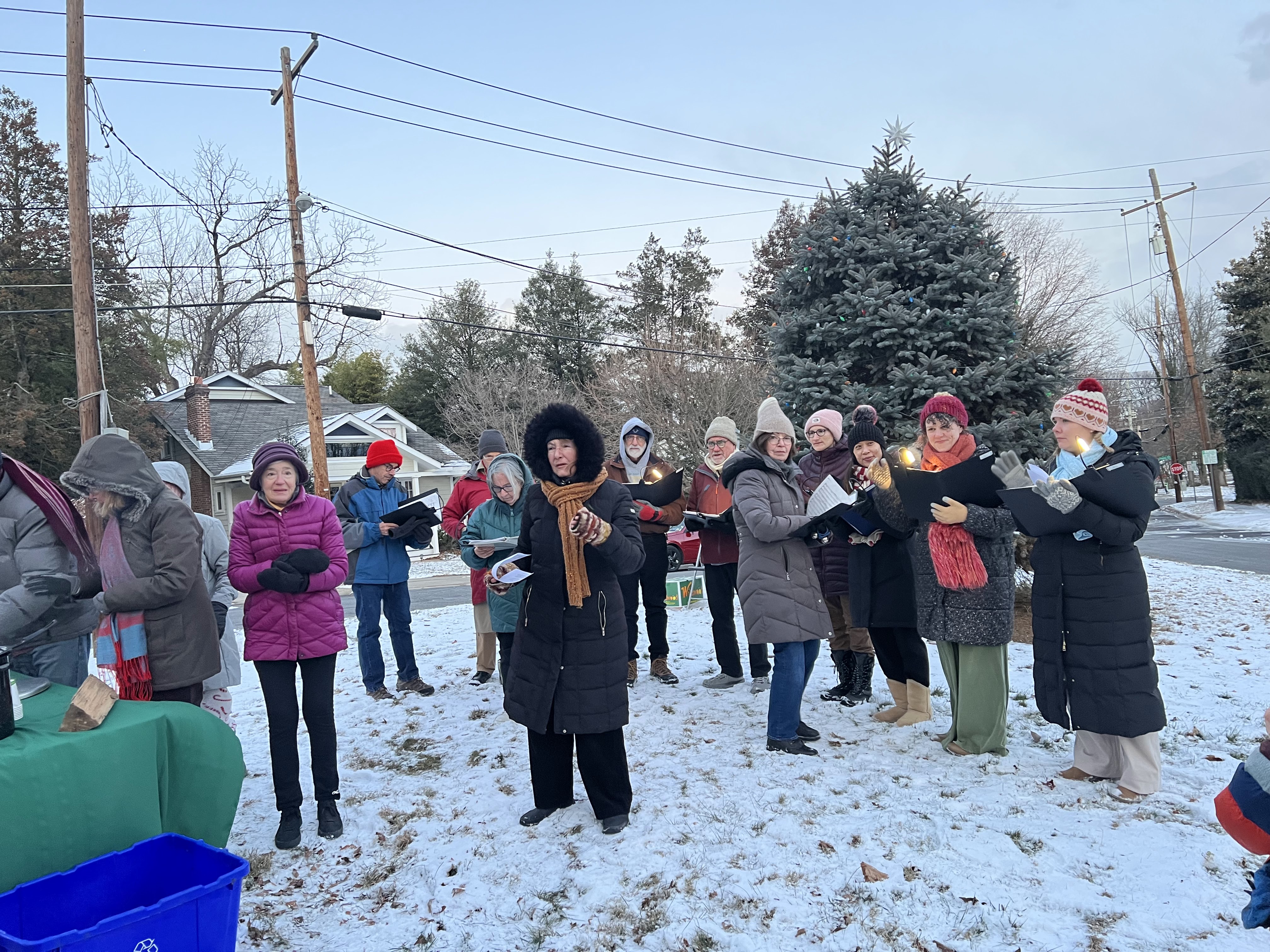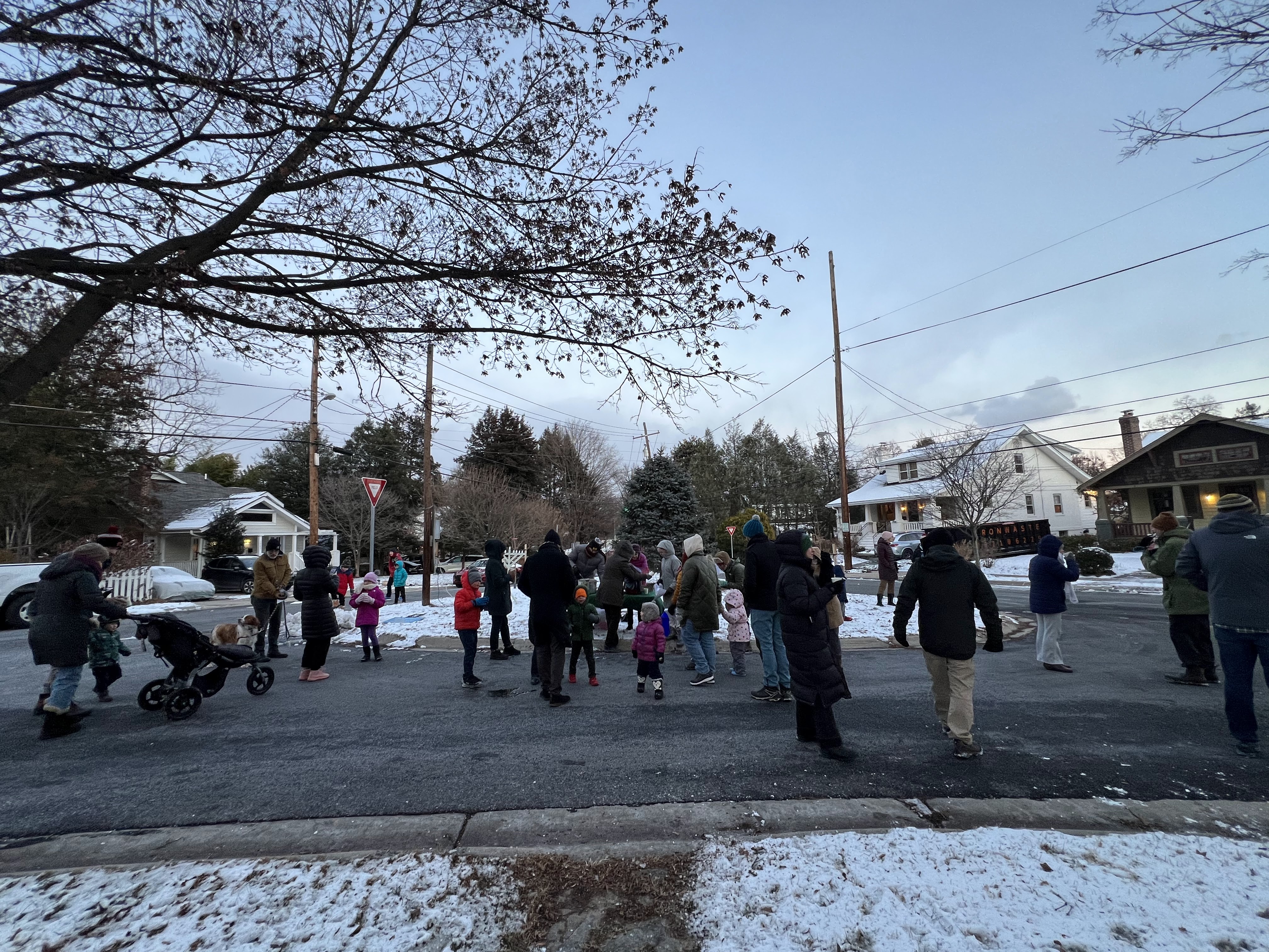 On December 14, 2025, perhaps the coldest, windiest day in NWCA’s long tradition of lighting the holiday tree and menorah on the first night of Hanukkah, 75 neighbors, friends, and pets turned out to join in good cheer, song, hot cider, treats, and an appearance from Santa. A miracle!