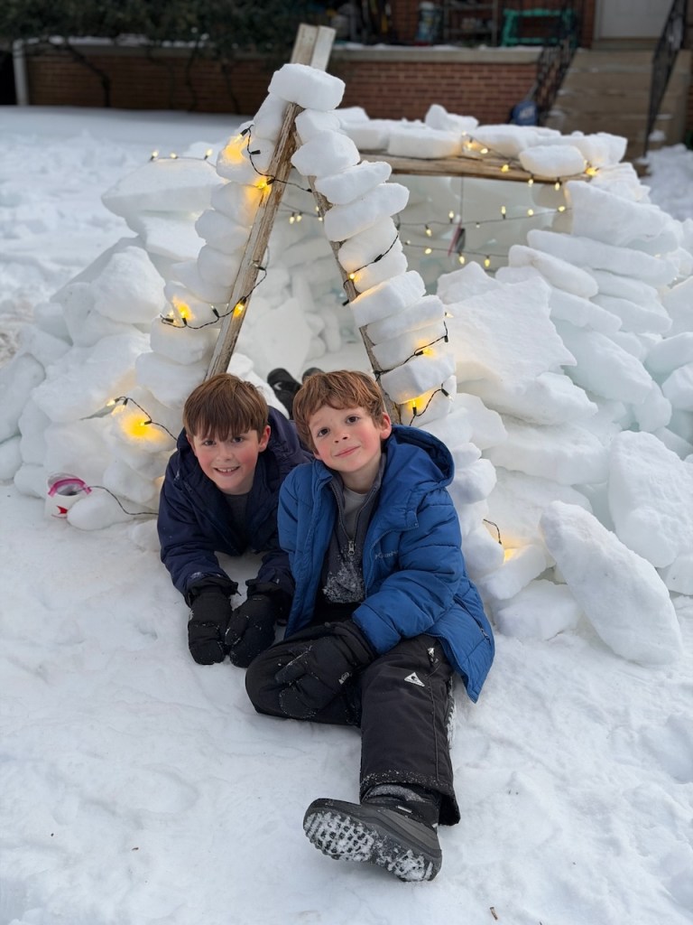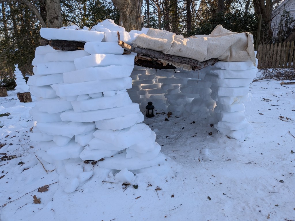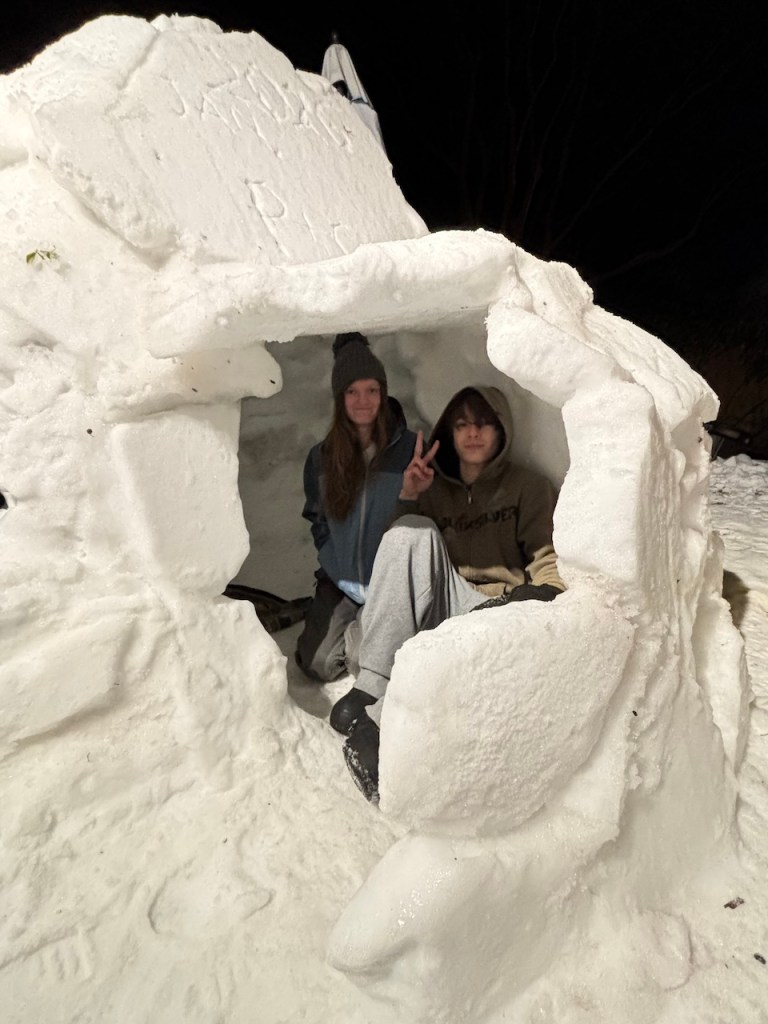 Indeed, they put in many hours of work–days, in some cases–to complete these impressive abodes. Luckily, with school out for over a week and nine days straight of chilly temps, they had plenty of time on their hands!
