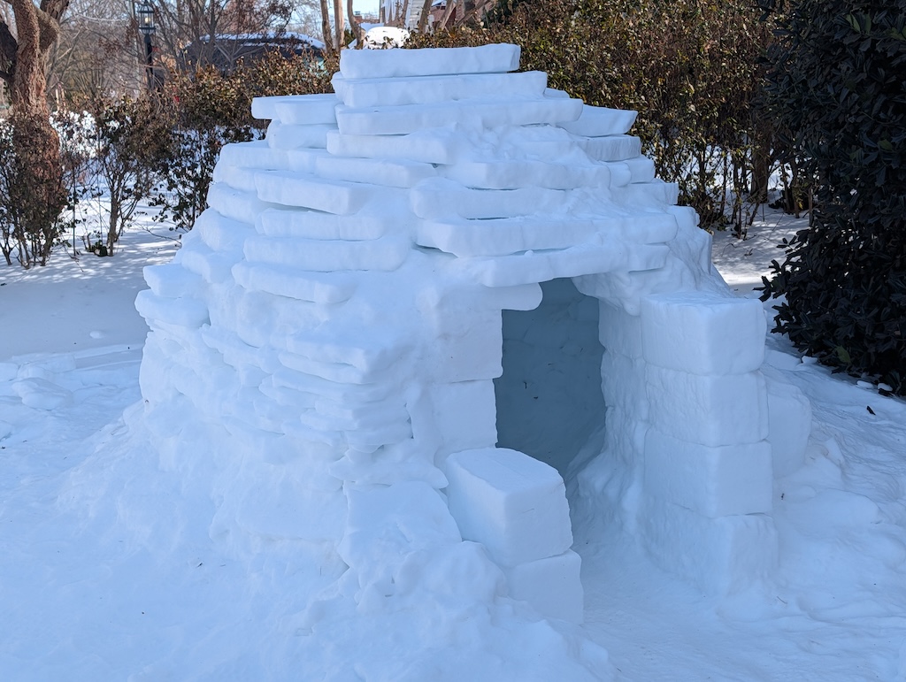 While you wait, how about going on a Snow Art Scavenger Hunt? How many cool creations can you spot? More specifically, how many igloos, snow people, and unique snow sculptures can you find? And can you locate the “Snow Henge” of North Woodside?
