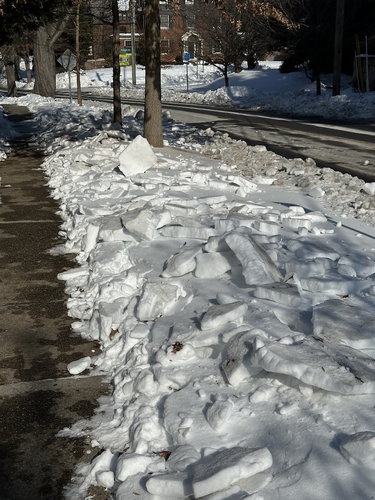 Kudos to all who toiled and labored and nearly broke their backs to clear neighborhood sidewalks. (And if you notice an area that still needs clearing and are able, please help with further ice removal. Many shovelers make light work!)