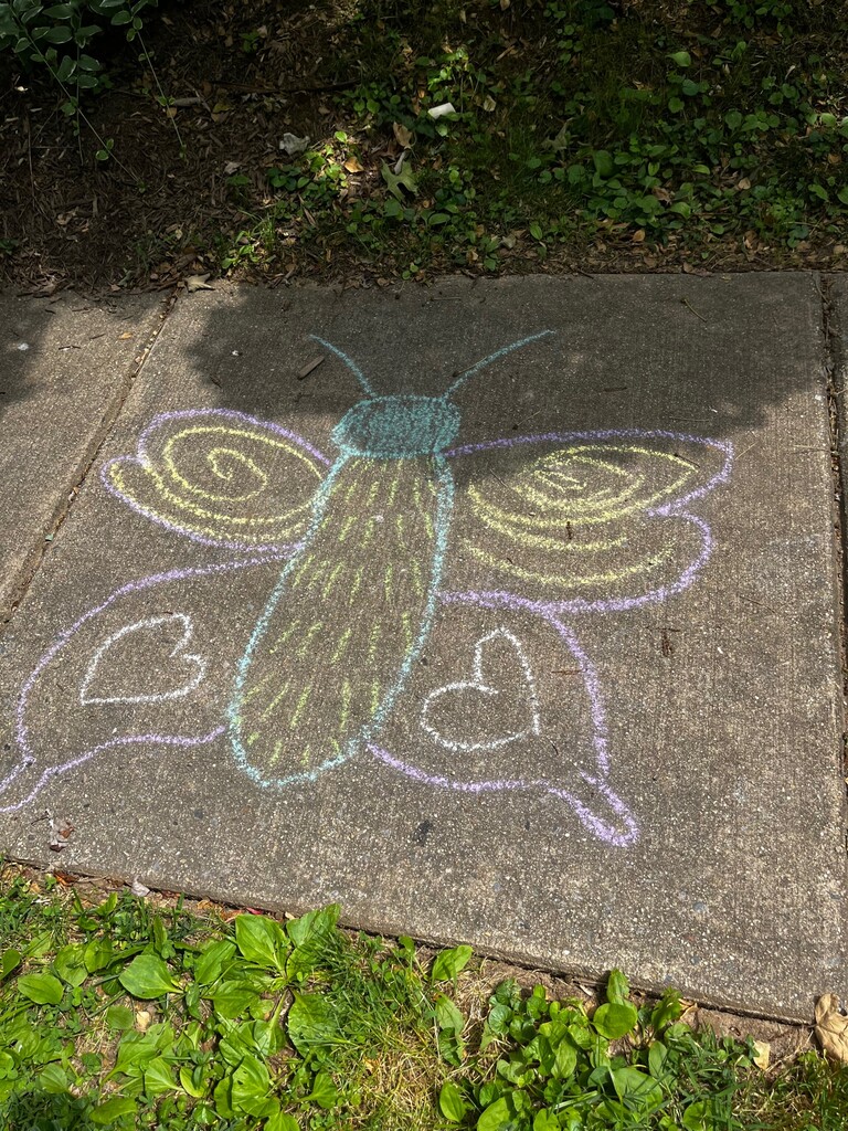 And please send photos of your colorful sidewalk artwork, so a virtual gallery can be seen and enjoyed even if a passing rainstorm washes original away.
