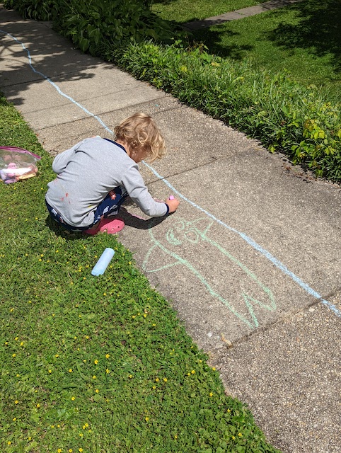 We have lots of new sidewalks around the neighborhood, a perfect blank canvas for some rainbow chalk art!