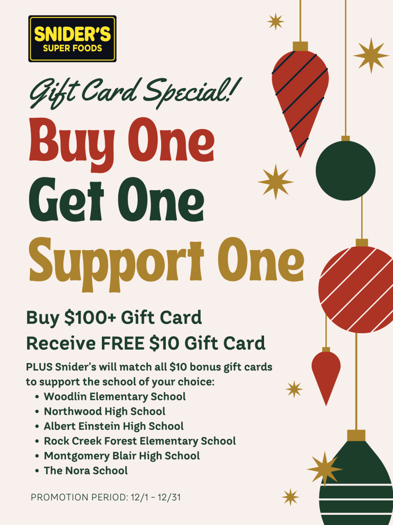 Jerry created the Snider’s Receipt Donation Program as a way to generate business and to give back to the community, explains Dave. His three children attended Montgomery County Schools, including the former Montgomery Hills Junior High (now the Greater Washington Area Torah School), just up the street from Snider’s. The program has grown by word of mouth over the years to include 25 schools. But our neighborhood school, Woodlin Elementary, is the largest participant. This year Woodlin received $2,804 from Snider’s – a significant donation that will help pay for such PTA-sponsored efforts as buses for after-school clubs. “It was a way to say thank you to our customers, to give back to our community,” says Dave, a longtime North Woodside resident until a few years ago.